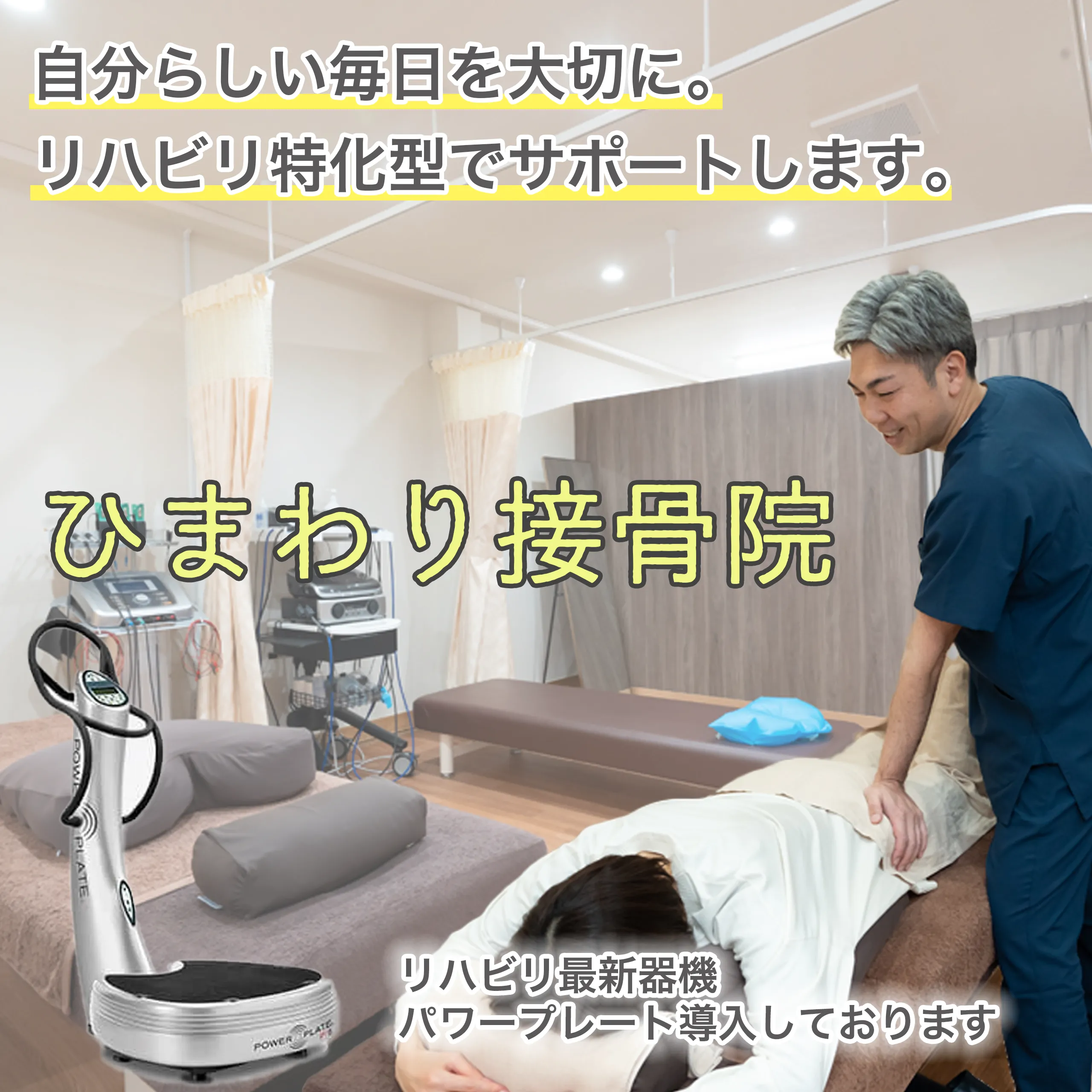 当院は最新のリハビリテーション機器を導入し、特にパワープレートを活用して効果的な治療を提供しています。患者の早期回復と健康維持に焦点を当てています。